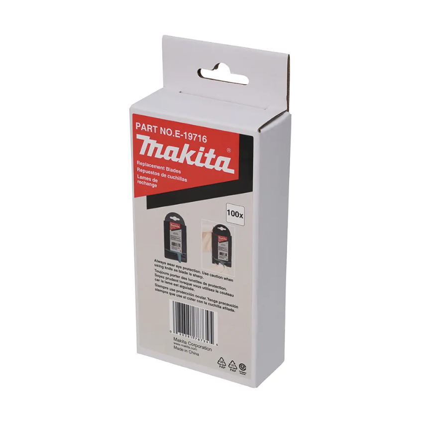 Makita Replacement Utility Knife Carbon Steel Blades 100 Pack E-19716