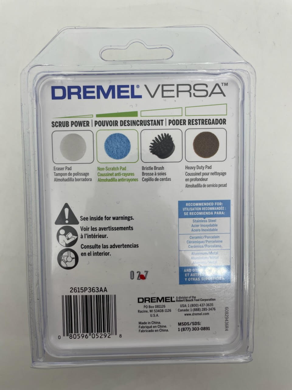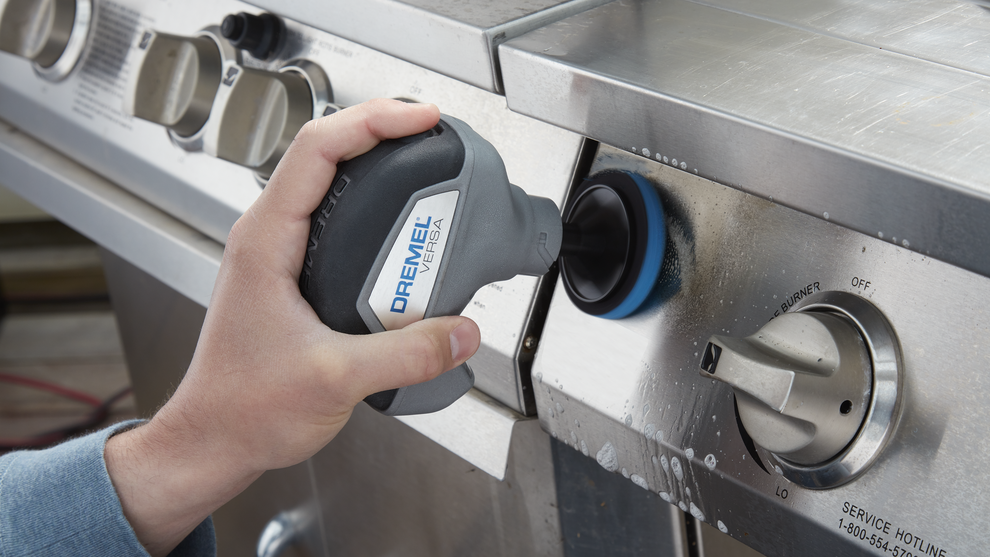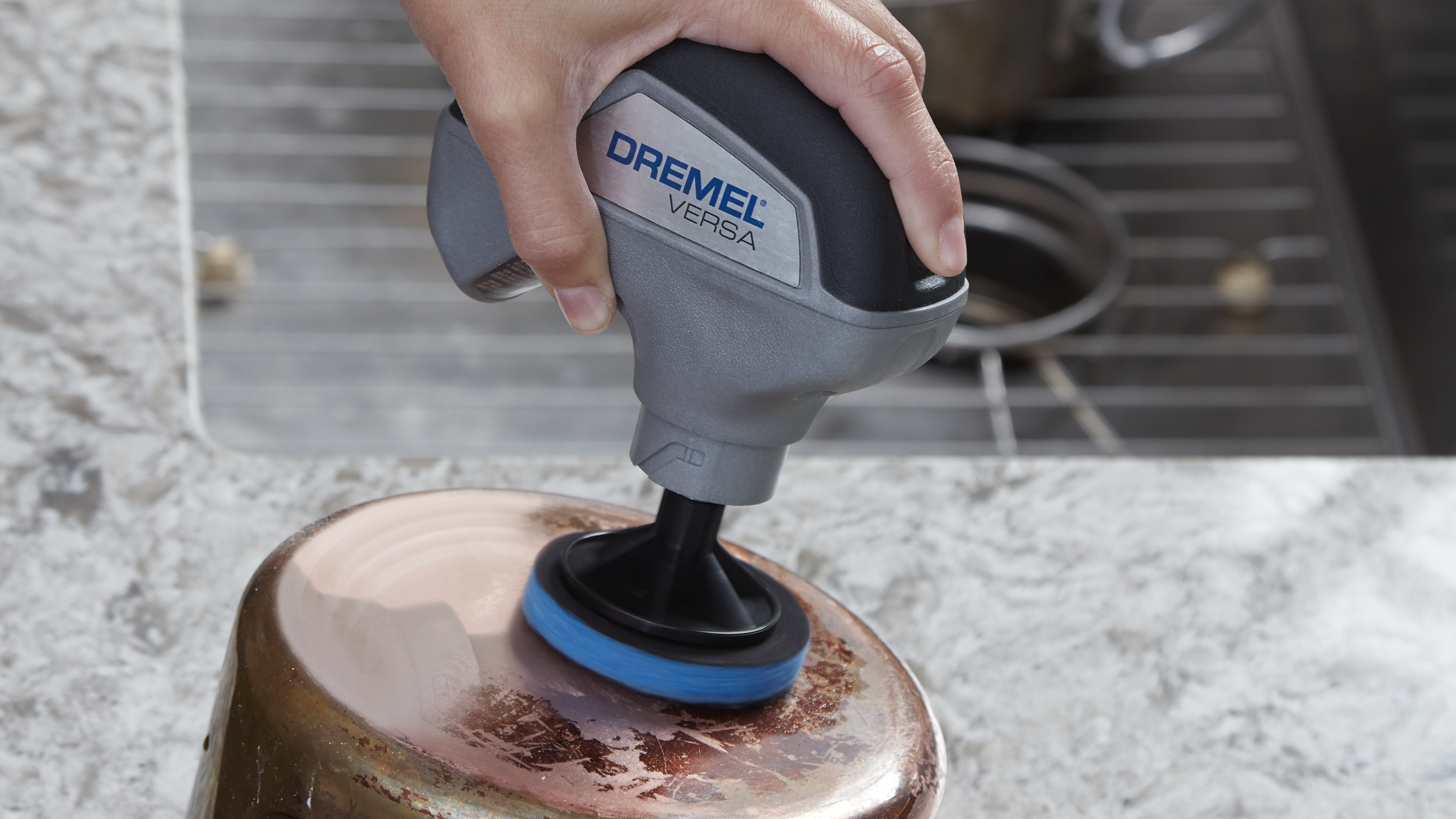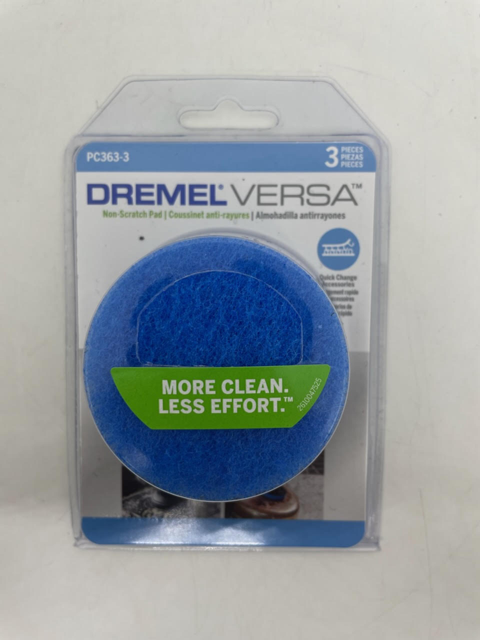 - Perfect for tackling surfaces that require scrubbing without scratching. The Dremel Versa Non-Scratch Pad is suitable for both indoor and outdoor use and is ideal for pots, pans, sinks and more. With its oversized surface area it fits easily into tight spaces. Combine the Dremel Versa’s high rotation speed scrubbing with the multi-purpose cleaning pad and the jobs will be completed in no time.