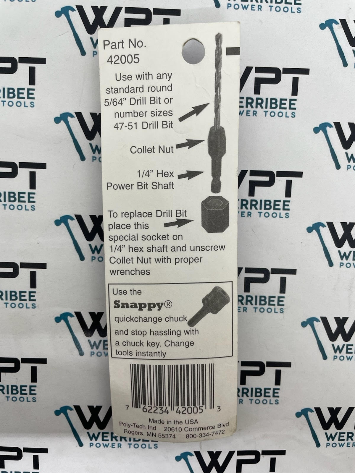 Snappy drill bit adapters utilize a collet to adapt standard round drill bits to a 1/4″ hex power bit shank to be used in quick change chucks and other tools designed to accept a 1/4″ hex shank, like impact drivers. Heat treated to a specific hardness to provide durability, while still maintaining the collets ability to compress around the drill bit. Securely holds a round drill bit of the rated size to 1/64″ smaller.