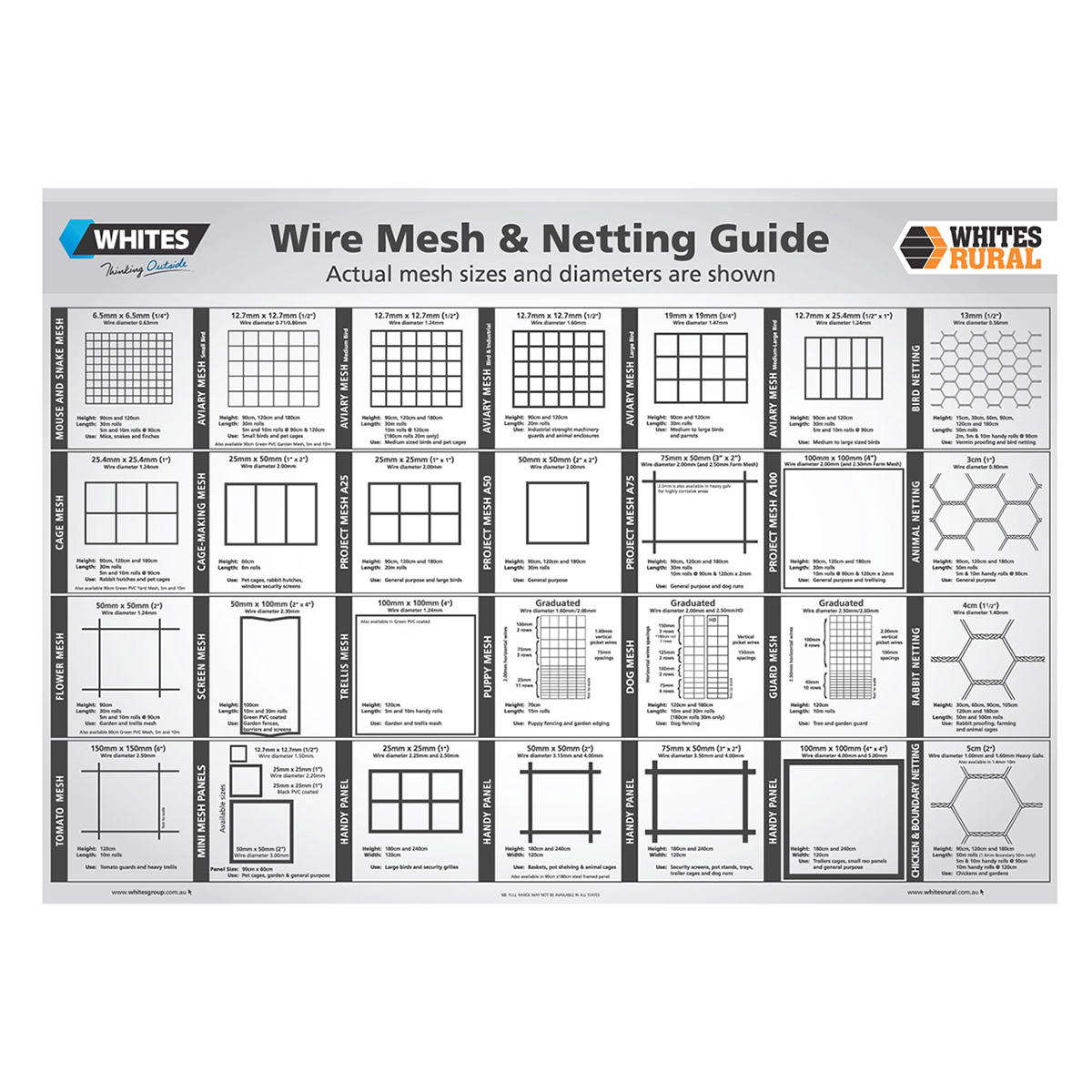 • To view the entire range of mesh and netting move to the ‘wire and mesh netting guide’ image in the photo gallery